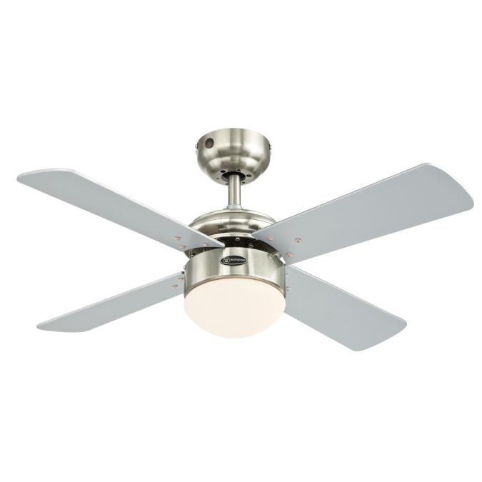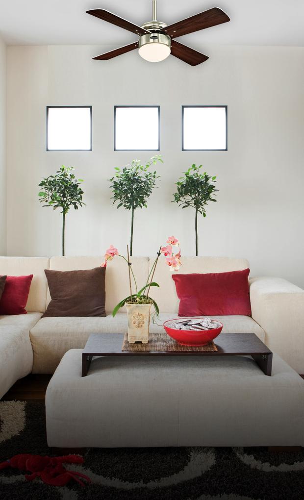 This contemporary ceiling fan uses a silicon steel motor with dual capacitor to provide powerful, quiet circulation. It also features a three fan speed handheld remote and reverse switch for adjustable comfort. Run the ceiling fan counterclockwise to stay cool in the summer, or run it clockwise to recirculate warm air and eliminate cold spots in the winter.