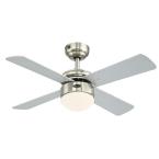 Add sophisticated style to any room with the Colosseum LED ceiling fan. Although simple in design, this fan includes a dimmable LED light kit for exceptional energy-savings and a remote control for convenience. With a sleek brushed nickel finish, reversible weathered maple/silver blades and an opal frosted glass fixture that provides bright illumination. The Colosseum fan features integrated LED Technology with no bulbs to replace. Consumes only 17 watts, 77% less energy than an incandescent fixture. With a light output of 800 lumens which is equivalent to 1-75W incandescent bulb. Long lasting 25,000 hour LED life of 22,8 years (based on 3 hours/day).