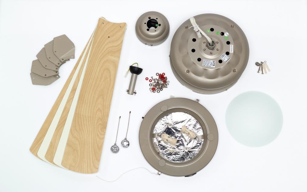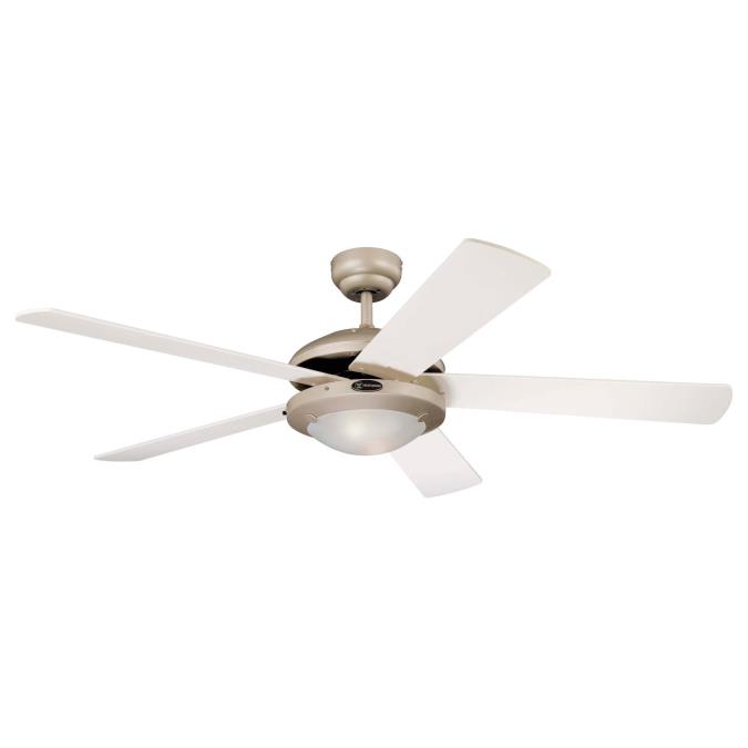 New interpretation of classicThe Westinghouse Comet Titanium ceiling fan is a new interpretation of our popular Comet model. The housing surface in titanium color, the flat luminaire with opal frosted glass and 5 reversible blades in maple and white give the Comet Titanium a classically modern look.