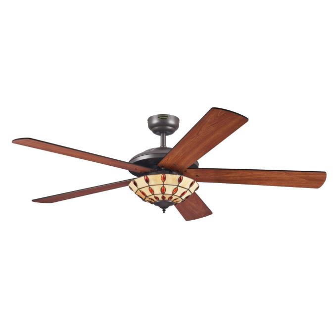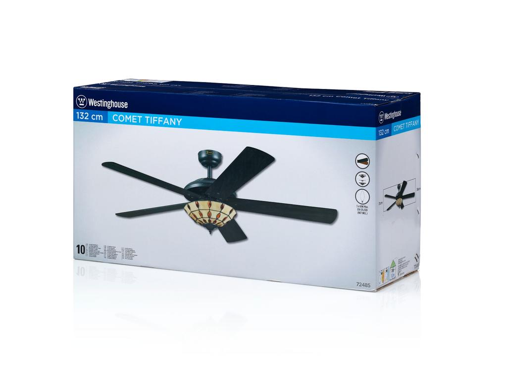 Collector's itemThe Westinghouse Comet Tiffany ceiling fan makes every collector's heart beat faster. The design in espresso, the single light with a Tiffany glass bowl and the 5 reversible blades in wengue and dark cherry give the Comet its unique design.