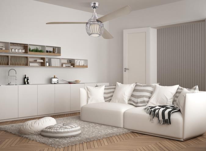 - Trending cage shade ceiling fan creates visual interest in large rooms