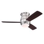 FEATURES & BENEFITS - Indoor ceiling fan offers cool, contemporary style with a brushed nickel finish and reversible textured weathered maple/dark cherry blades