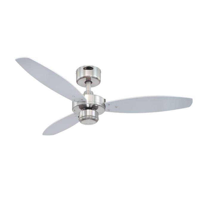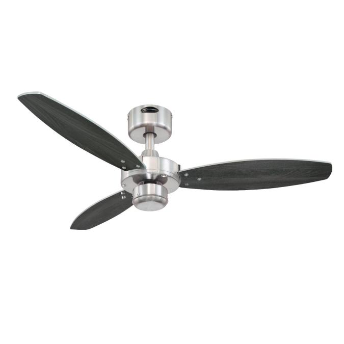 The difference lies in the detailsThe Westinghouse Jet I ceiling fan is one of our comfortable as well as simple models. The housing surface made of brushed nickel and 3 attached reversible blades in wengue and silver give the Jet I its clear and modern contours.