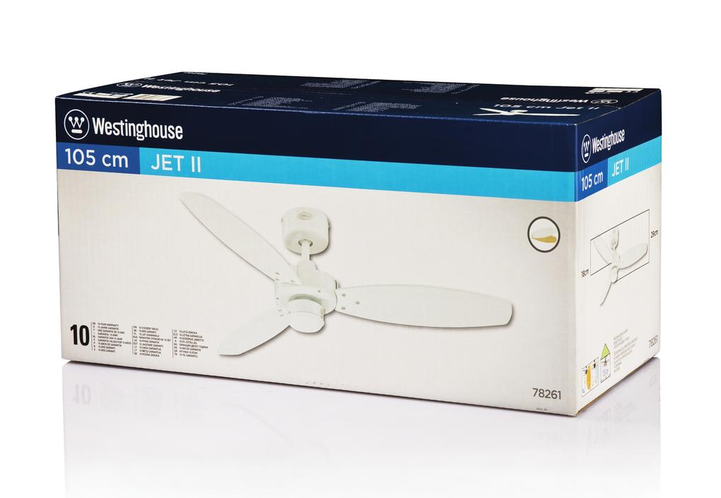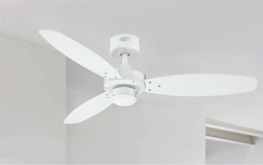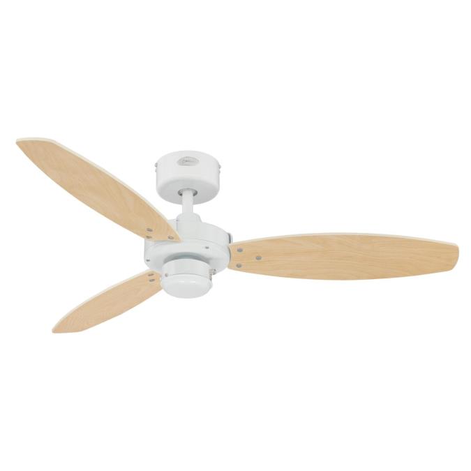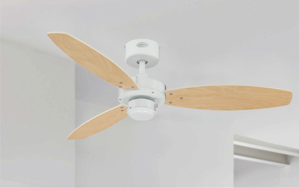 Pleasantly unobtrusiveThe Westinghouse Ceiling Fan Jet II is one of our models deliberately designed to be simple. The white housing surface and the 3 attached reversible blades in white and light maple characterize the timeless style of the Jet II.