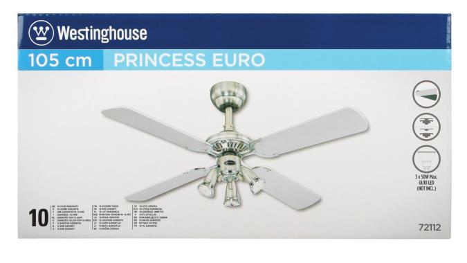 The Princess Euro provides powerful, quiet circulation. Three fan speed levels and a reversible switch create customized comfort. In warm weather, you can run the fan counterclockwise to stay cool. In cold weather, you can run it clockwise to recirculate warm air from the ceiling, eliminating cold spots and drafts.