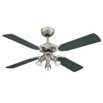 With a sleek appearance, the 105 cm Princess Euro indoor ceiling fan is trimmed out in a two-tone finish of dark pewter and chrome. Complementary blade finishes create a stylish look. Coordinate with your decor using silver or graphite finish. Excellent for task and accent lighting, direct the adjustable spot lights where light is needed.