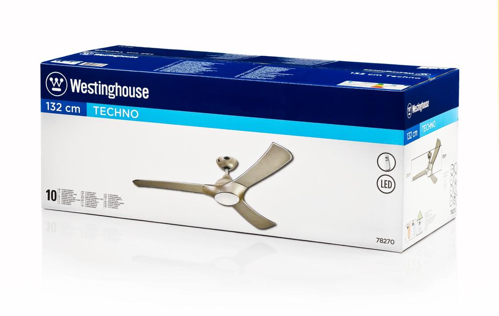 Made from one pieceThe Westinghouse ceiling fan Techno is one of our most homogeneous models. The housing surfaces in titanium, the energy-saving LED light kit and the 3 blades of titanium-colored plastic give the Techno a harmonious and flowing design that easily fits into any interior style.