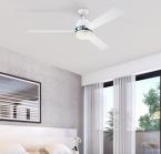 The Tristan 132 cm ceiling fan with light and remote control features a two-tone finish of white with brushed nickel accents. With three reversible blades in coordinating finishes of white and light maple, the Tristan is an eye-catching enhancement for the modern home.