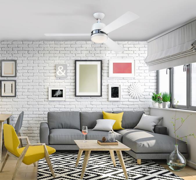 - Complete your modern interior with the dual-toned Tristan ceiling fan
