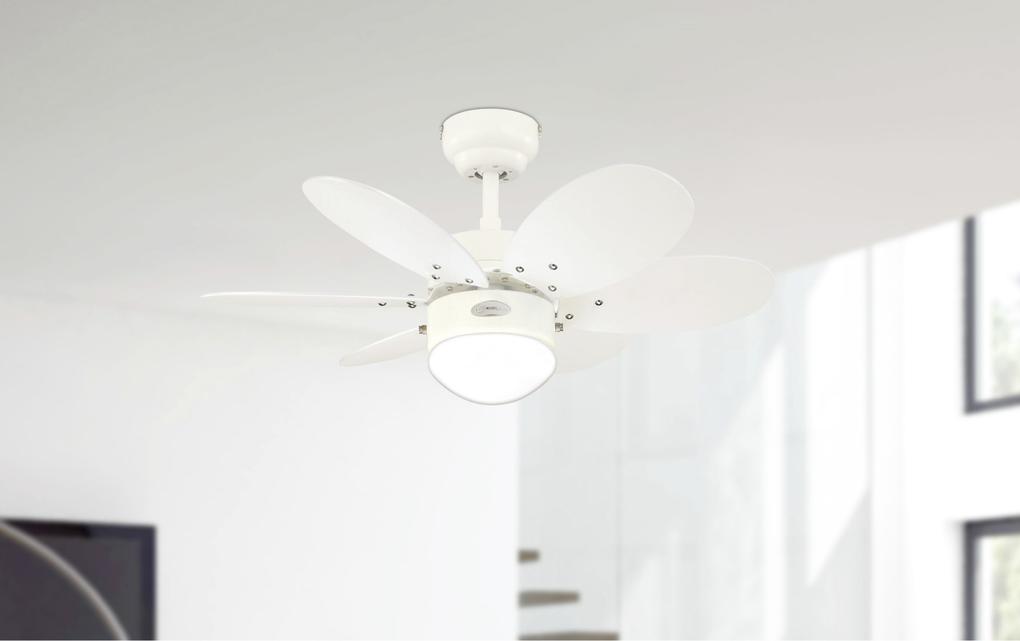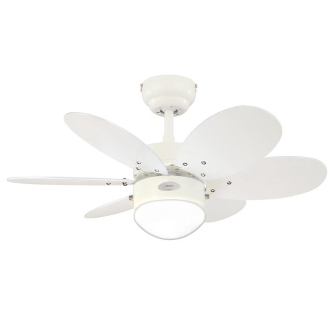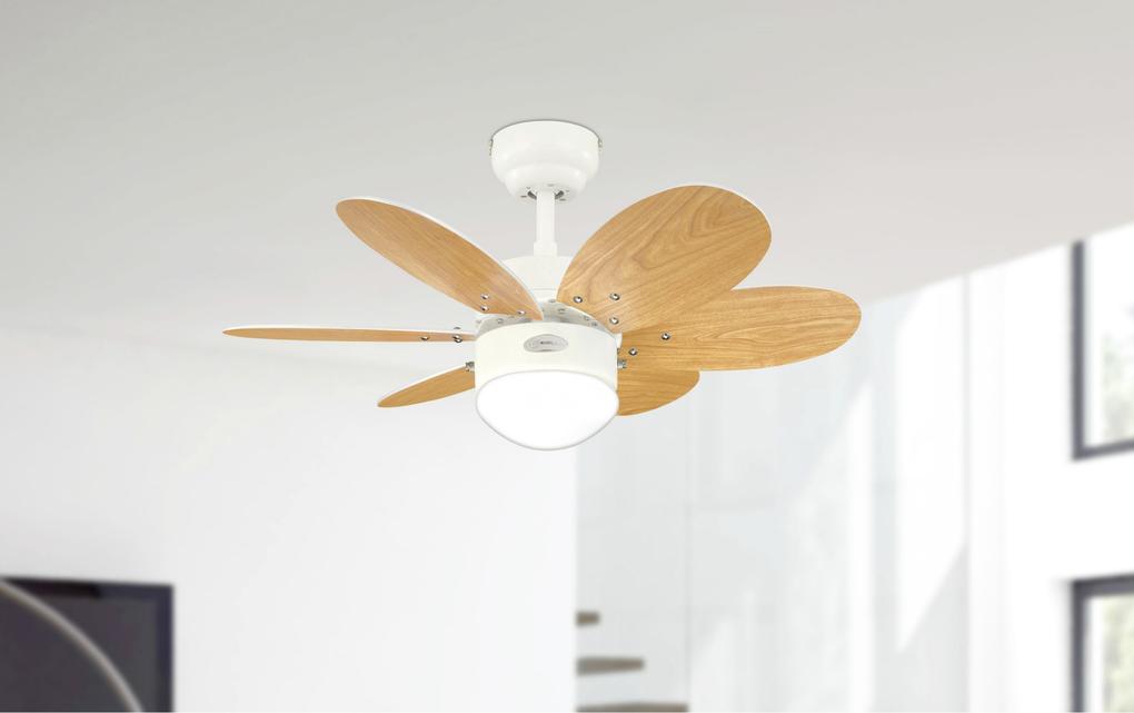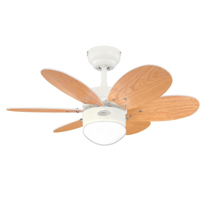 Fresh and youngThe Westinghouse Turbo II ceiling fan makes both children and adults happy. The white housing surface, the simple integrated single light with frosted glass and the 6 blades in a harmonious mix of colors make the Turbo II a friendly highlight of any modern interior. For those who prefer something more discreet, this ceiling fan also includes a second set of reversible blades in white and maple.