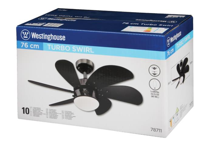 Featuring a light kit with opal frosted glass, the Turbo Swirl provides beautiful illumination and charming ambiance. The light kit is LED compatible with energy-saving Westinghouse LED light bulb #3712640 (not included).