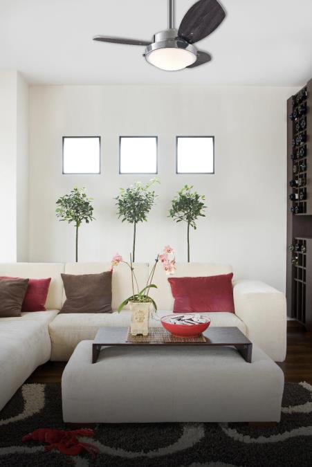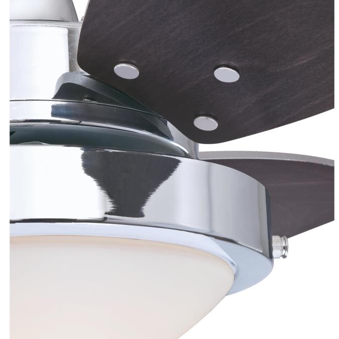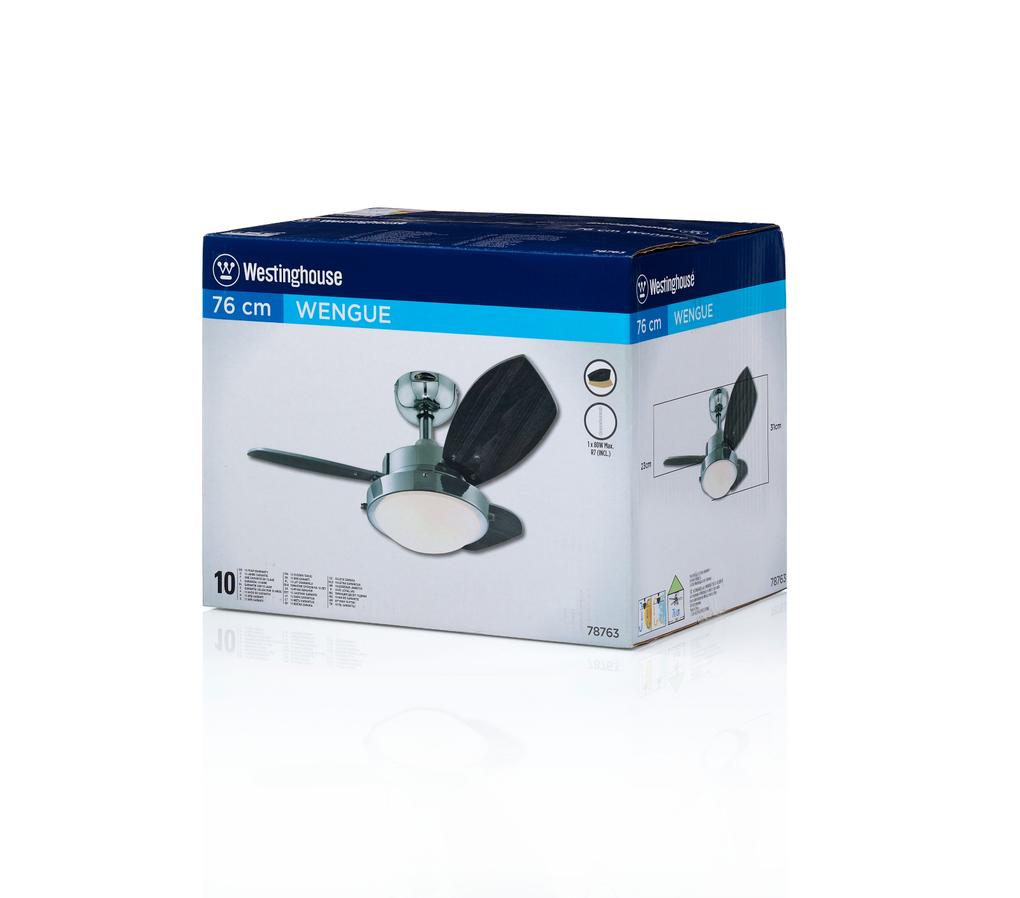 The Westinghouse Wengue ceiling fan is a real eye-catcher. The chrome housing surface, the perfectly integrated single light with opal frosted glass and the 3 elegantly shaped reversible blades in wengue and beech give this model a contemporary and harmonious design that easily fits into any interior style.