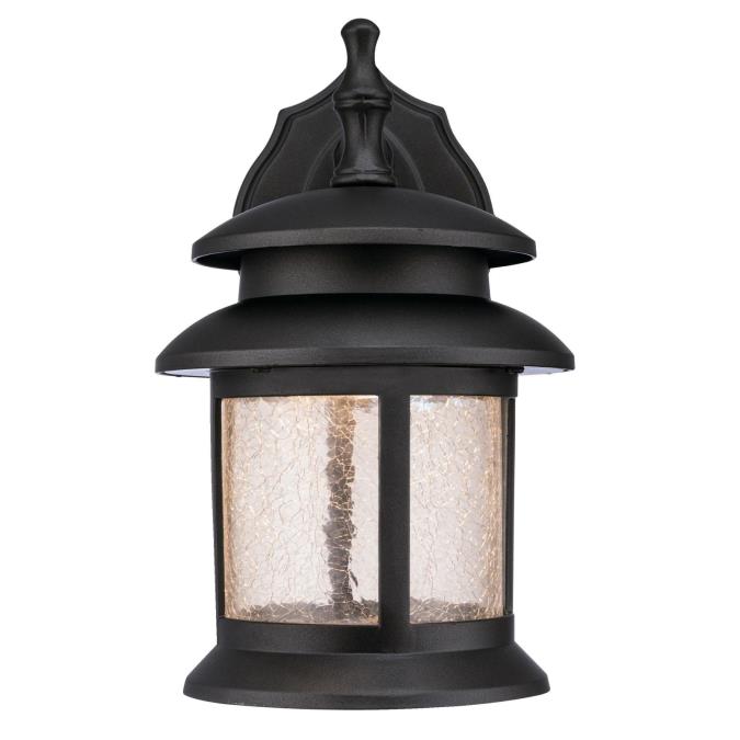 Cast a luminous glow outside your home with this one-light LED wall fixture. Traditional design lantern brings distinguished style to outdoor spaces, featuring clear crackle glass and a rich oil rubbed bronze finish with energy saving LED technology.
