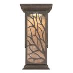 One-light LED outdoor wall brightens the outdoors in energy-saving style. Elegant seeded glass panels create the backdrop for an eye-catching willow branch design in victorian bronze finish. This design's unique features will highlight a variety of outdoor spaces, from traditional to rustic.