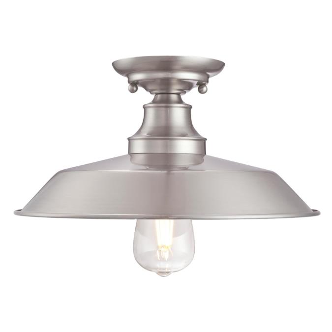 - The Iron Hill one-light semi-flush mount fixture features a brushed nickel finish perfect for any decor from modern to farmhouse