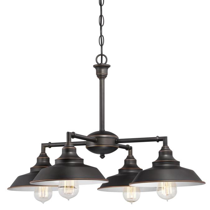 The industrial, vintage style of the convertible Iron Hill chandelier/semi-flush ceiling fixture is perfect for a multitude of indoor styles, from modern to farmhouse. Oil rubbed bronze finish with highlights adds a rustic farmhouse appeal.