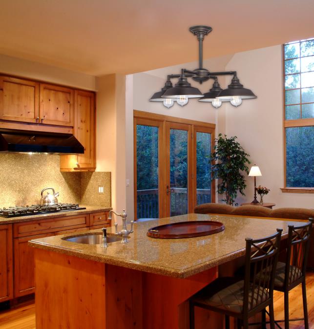 - Iron Hill convertible four-light chandelier/semi-flush mount fixture's is versatile in design and function
