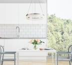- A smooth ring of LED light and aircraft cable suspension lends the Lucy pendant a modern touch