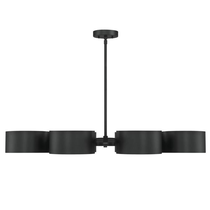 The precise arrangement of ringed bulbs and contrasting lines form a striking balance in the remarkable Zaro chandelier design. The chic, modern statement piece gets an industrial edge from the iron finish, accentuating its metallic formations.