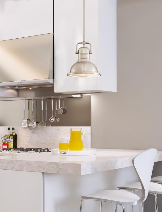 - Versatile one-light pendant blends well with industrial-style, traditional and contemporary homes