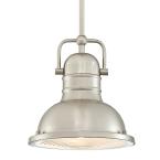 Bring the sleek, Industrial feel of the Boswell pendant light into your home. The vintage-inspired design in a brushed nickel finish is the perfect complement, or the defining touch for industrial-styled rooms. The prismatic lens of durable frosted acrylic reveals historical influences and bright illumination above a kitchen island or dining area.