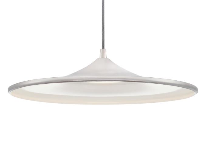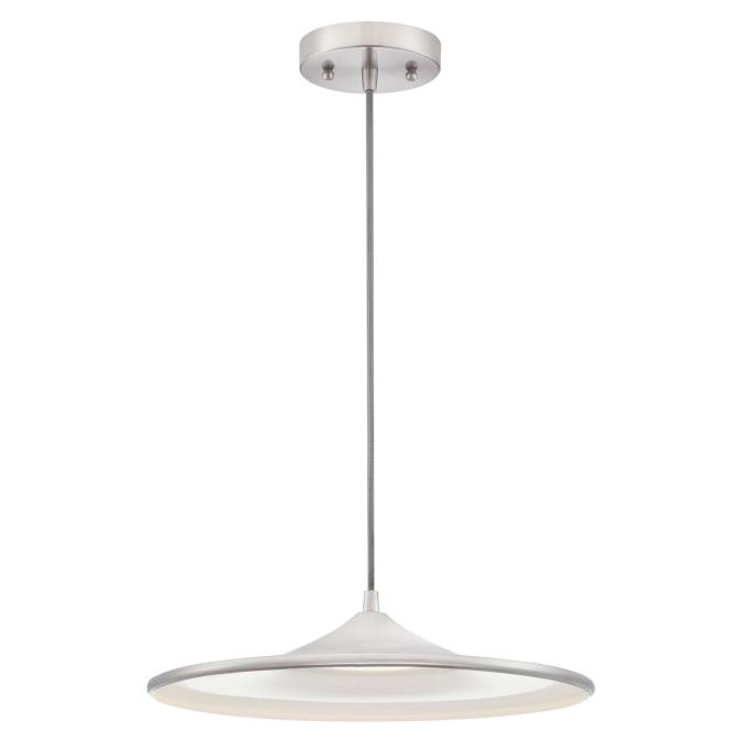 Refresh the look, and illuminate your home or business with this stylish brushed nickel LED pendant. Creates a striking accent, and energy-efficient light source when hung over a kitchen island, dining table, or in a home office. Add one or more of these sleek LED pendants in your entryway to set your home’s tone of sophistication and style.