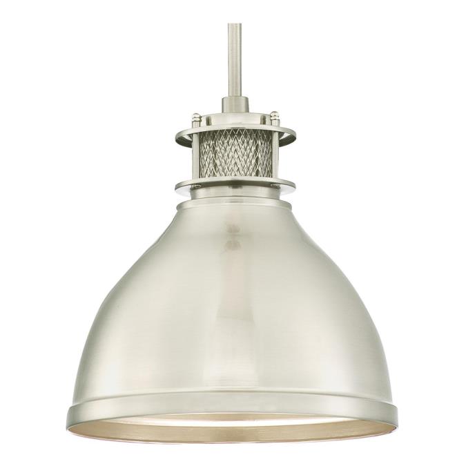 A touch of mesh lends an industrial accent to this sleek one-light pendant. Brushed nickel finish adds a lustrous touch.Hang one pendant in a cozy reading nook, or above a desk, vanity, or small table. Install in groups of two or three above a kitchen island or dining room table for decorative down lighting. Featuring three 24 cm rods, it's easy to adjust the height of one pendant, or hang multiple pendants at the same height. Can be installed on sloped ceilings.