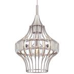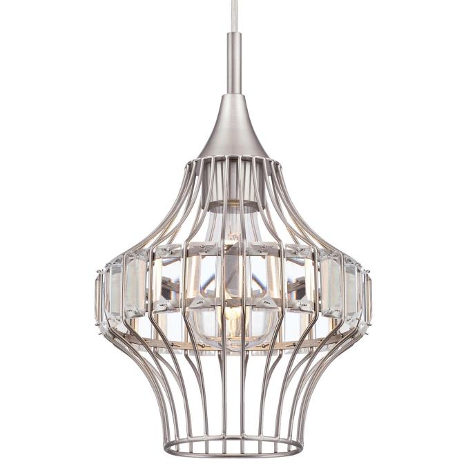The One-Light Pendant sparkles and shines. The stunning crystal prism shade with a sleek brushed nickel finish creates remarkable illumination and a touch of vintage glamour.