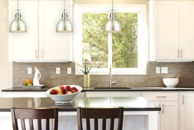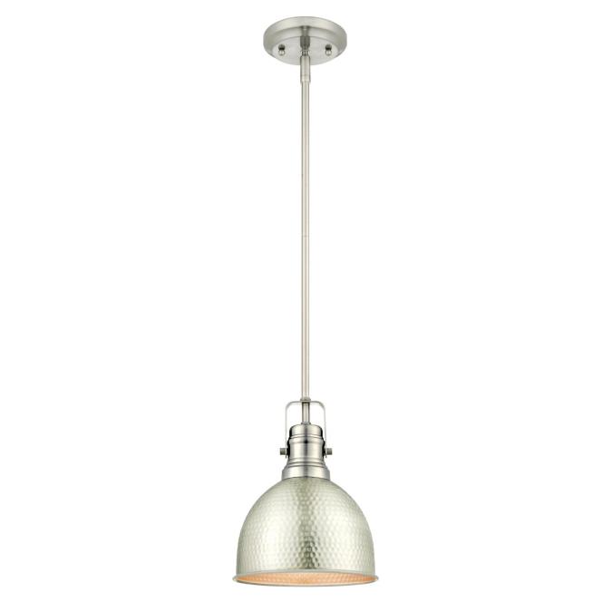 Bring a polished but relaxed look to your home with this retro-meets-contemporary pendant. The brushed nickel finish and hammered shade add textured radiance to any room. For inspired lighting effect, hang in groups of three or four above your kitchen island. Also beautiful on its own, in any space.
