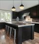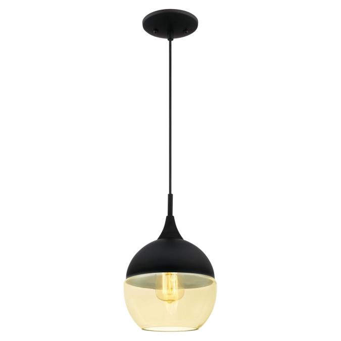 - Two-tone matte black and amber glass enhances the warm, sophisticated look