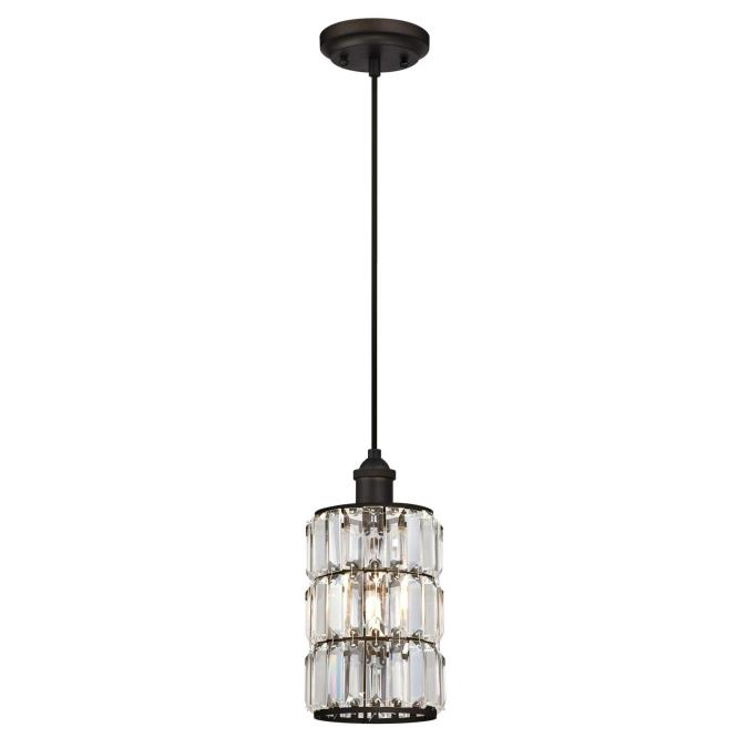 - Crystal prism, cylinder-shaped glass with oil rubbed bronze trim, adds a warm touch to this pendant design