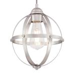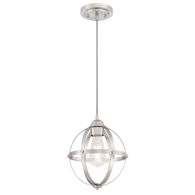 The one-light indoor pendant in a brushed nickel finish delivers a vintage-industrial meets farmhouse-style look, adding a charming, casual feel to any space. The brushed nickel finish delivers radiant illumination while reflecting your sense of design.