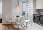 The pendant's easy but provocative combination of form and function is found in the details. Its triad of straight cords contrasts beautifully with the circular shades, joined together for plentiful light. Provides ideal downlighting and ambience.