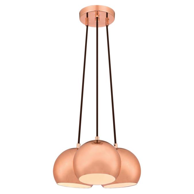 Invigorate the style of any room with this fun, three-light cluster pendant. Its charming design, reminiscent of vintage Industrial-era lighting, adds character - from foyer to dining area to living room. In the kitchen, its retro good looks and gleaming copper finish warm up an island or breakfast bar.