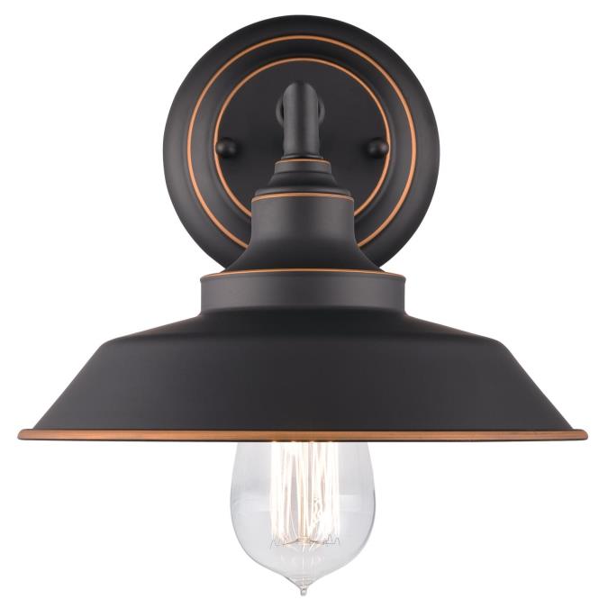 - The Iron Hill one-light wall fixture features oil rubbed bronze finish with highlights perfect for any decor from modern to farmhouse