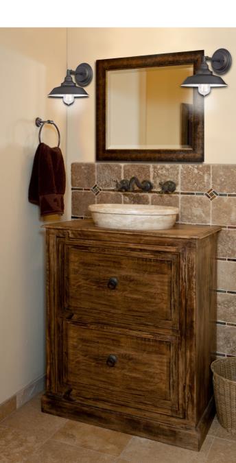 To enhance the ambiance and industrial appeal of the Iron Hill wall light in a bathroom or bedroom, we recommend Westinghouse clear filament LED bulb in ST64 shape for a vintage look. Add matching fixtures from the Iron Hill collection, creating design consistency throughout your home.