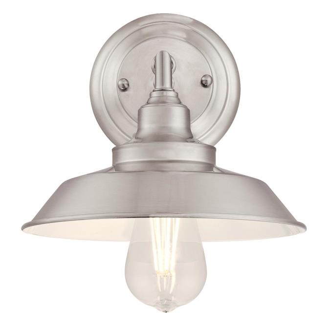 - The Iron Hill one-light wall fixture features a brushed nickel finish perfect for any decor from modern to farmhouse