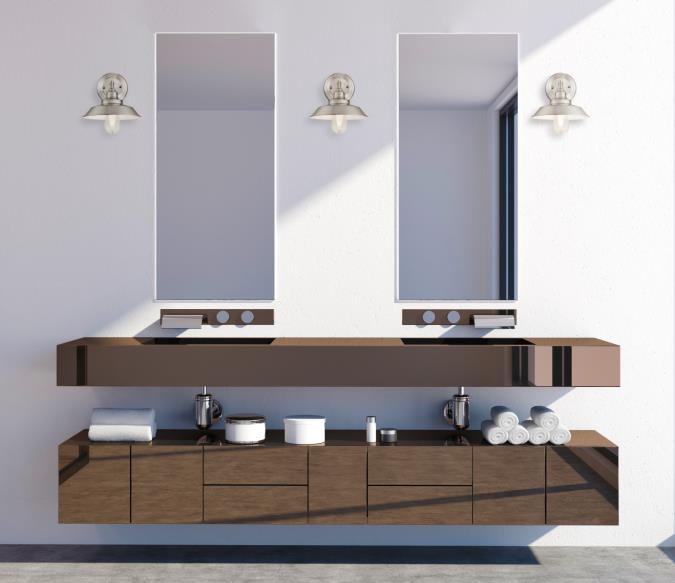 To enhance the ambiance and industrial appeal of the Iron Hill wall light in a bathroom or bedroom, we recommend Westinghouse clear filament LED bulb in ST64 shape for a vintage look. Add matching fixtures from the Iron Hill collection, creating design consistency throughout your home.