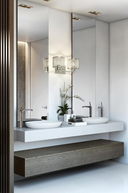 Bring the alluring illumination of the Morrison wall fixture into your home. This sleek, contemporary design features brushed nickel mesh shades that obscure the exposed bulbs, reminiscent of vintage-industrial style. Can be installed in an up or down position.