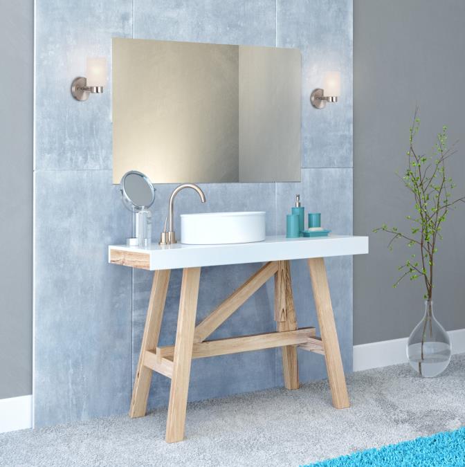 - Refined one-light wall fixture is distinguished by its contemporary brushed nickel finish and elegant design