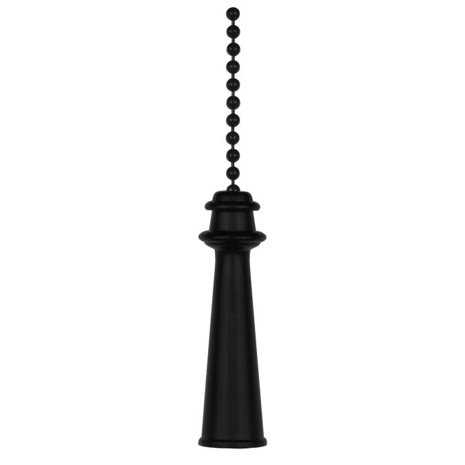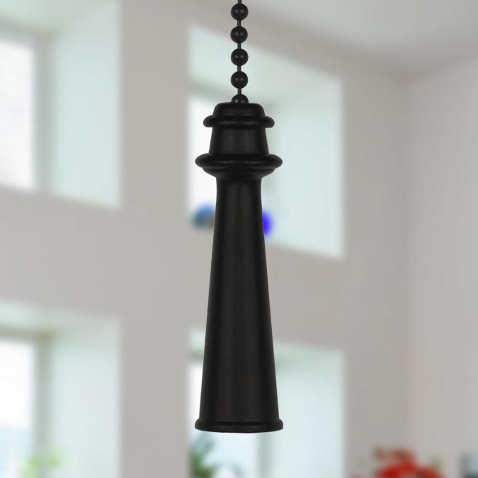 This stately, traditional matte black finish trophy pull chain makes a handsome addition to classic decors. The slightly tapered, cylindrical handle, topped with carved detail ridging, is fixed to the end of a 30,5 cm beaded chain. An ideal replacement for broken pull chains and a perfect decorative accent for any existing ceiling fan.