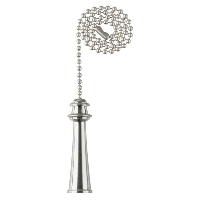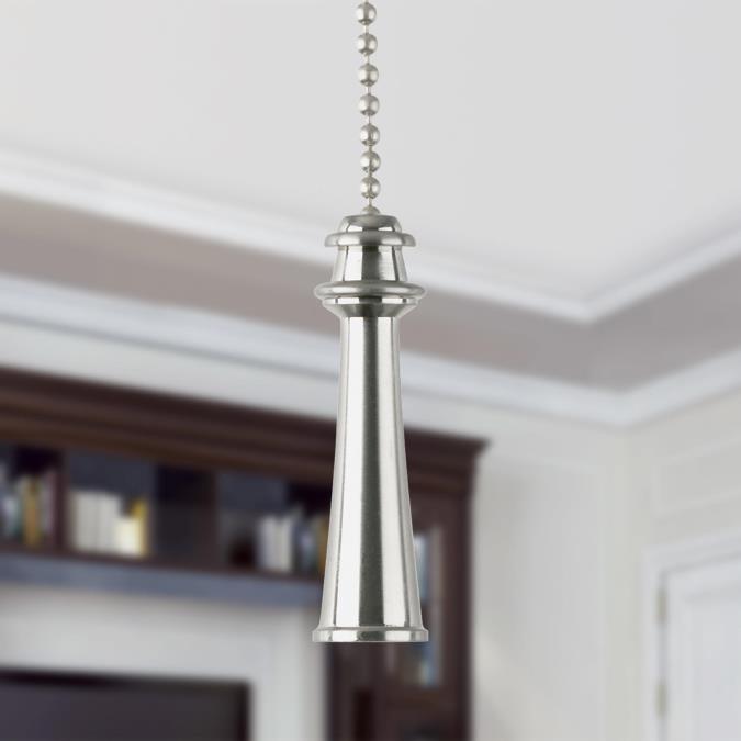 This stately, traditional brushed nickel finish trophy pull chain makes a handsome addition to classic decors. The slightly tapered, cylindrical handle, topped with carved detail ridging, is fixed to the end of a 30,5 cm beaded chain. An ideal replacement for broken pull chains and a perfect decorative accent for any existing ceiling fan.