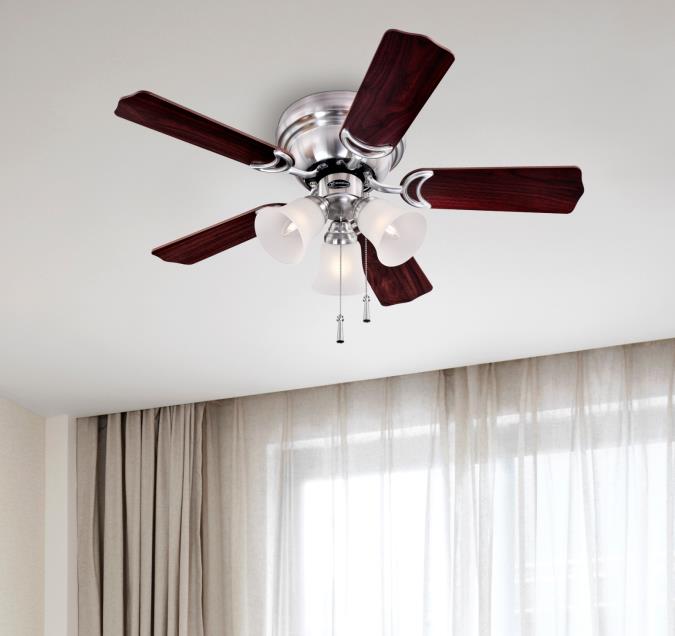 - Brushed nickel beaded chain coordinates with many ceiling fan finishes