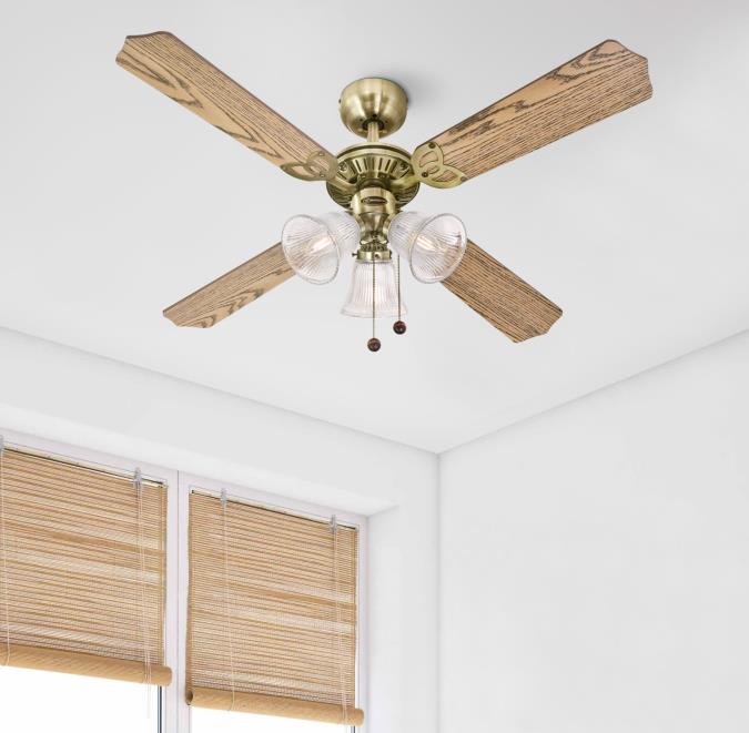 - Antique brass beaded chain coordinates with many ceiling fan finishes