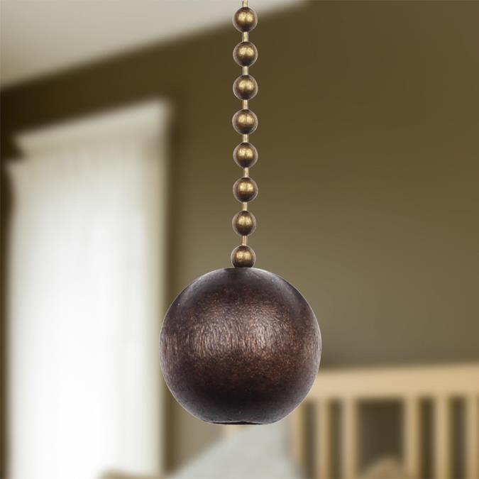 With its simple design and rich wooden finish, this ball pull chain goes well with most decors. The walnut wooden ball handle is easy to grasp. An ideal replacement for broken pull chains and a perfect decorative accent for any existing ceiling fan.