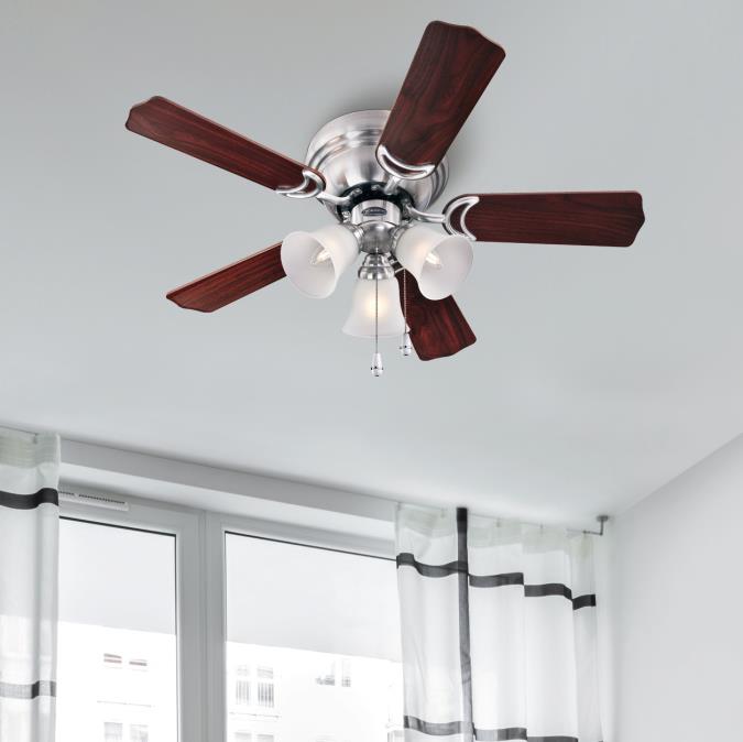 - Chrome beaded chain coordinates with many ceiling fan finishes