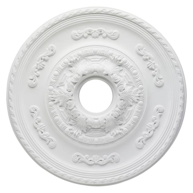 This 53,3 cm diameter medallion is made of durable, lightweight polyurethane that will never warp, split, or splinter. Simply apply adhesive and use the included screws to fasten the medallion to any surface. Use it to cover a hole or hide ceiling blemishes and cracks that may appear around ceiling fans and lighting fixtures.