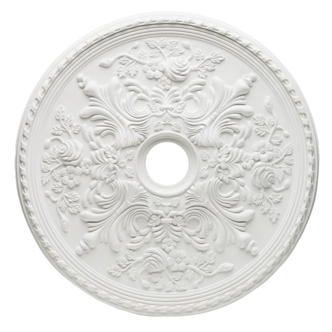 Bring classic charm to your home's decor with this stunning 71,1 cm, white finish ceiling medallion. Featuring acanthus leaves, climbing roses, and full mayflowers, this ceiling medallion evokes lush Victorian gardens. The intricate design provides an added decorative element to complement existing molding, woodwork, or other architectural details.